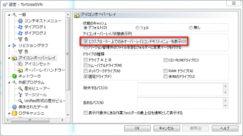どうやら、TortoiseSVNのアイコンオーバーレイの設定が悪さをしているようです。バグそのものはEAC側にありそうですが、とりあえずTortoiseSVNの設定を以下のように変更すれば落ちなくなりました。
