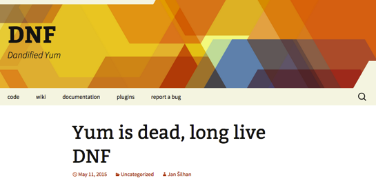 RHEL、Fedora、CentOSなどでお馴染みのパッケージマネージャYumが、 Fedora 22ではデフォルトではインストールされず、公式に「デッドプロジェクト」とみなされるようになったことが、DNFプロジェクトのブログ「Yum is dead, long live DNF」により明らかになりました。