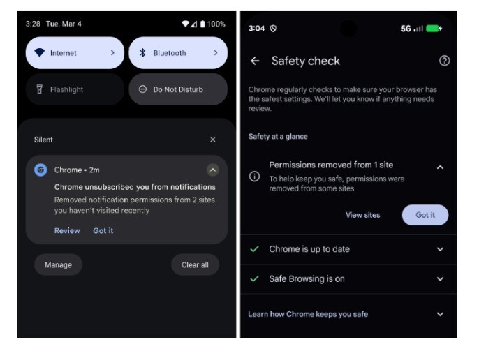 自動取り消し機能は無効化可能で、通知を再度許可するには、対象サイトに直接アクセスするか、Safety Checkを利用します。インストール済みのWebアプリには影響しません。