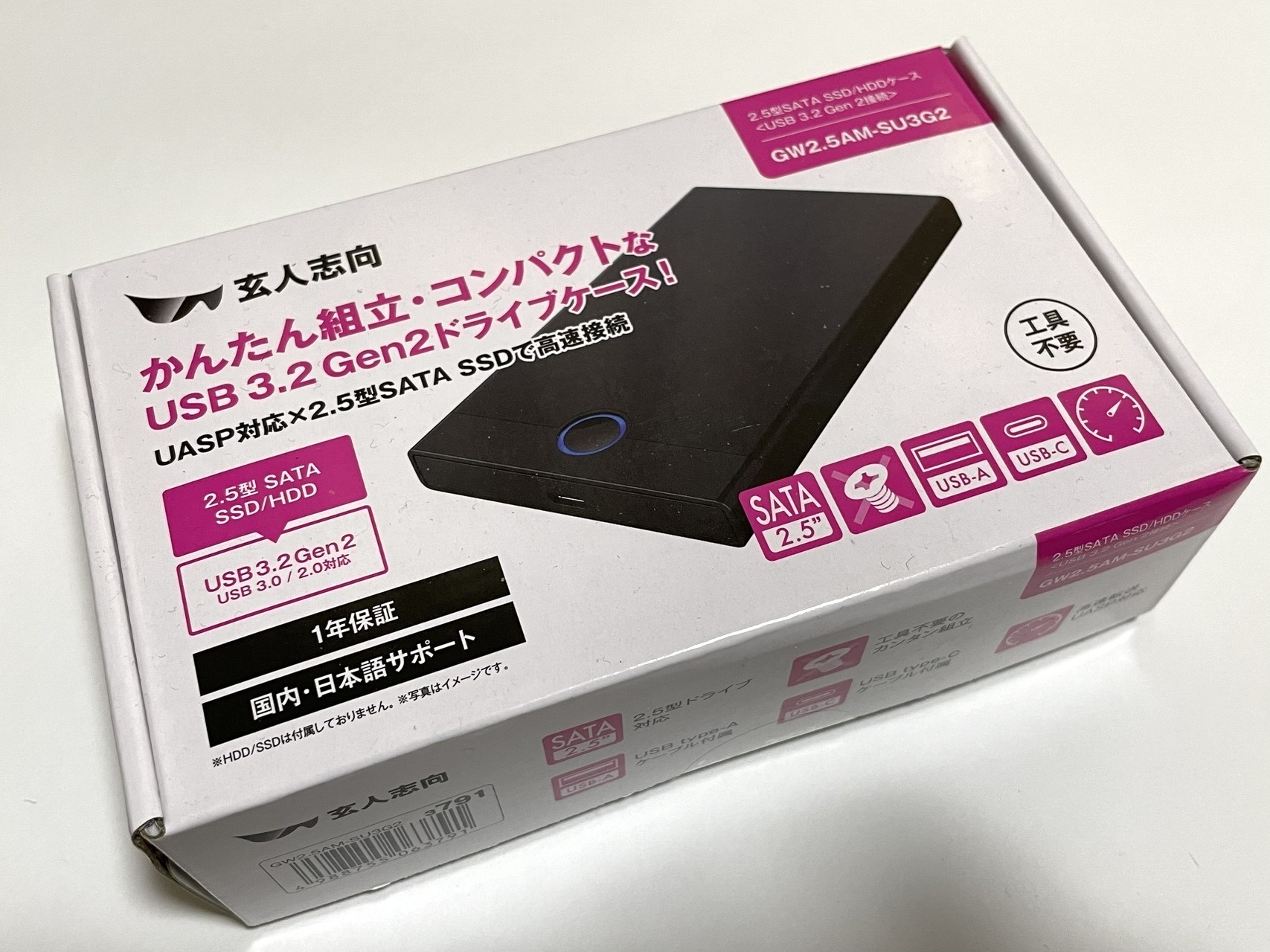今回購入したのは、玄人志向のUSB3.2 Gen2対応 2.5インチ SSD / HDDケース「GW2.5AM-SU3G2」です。