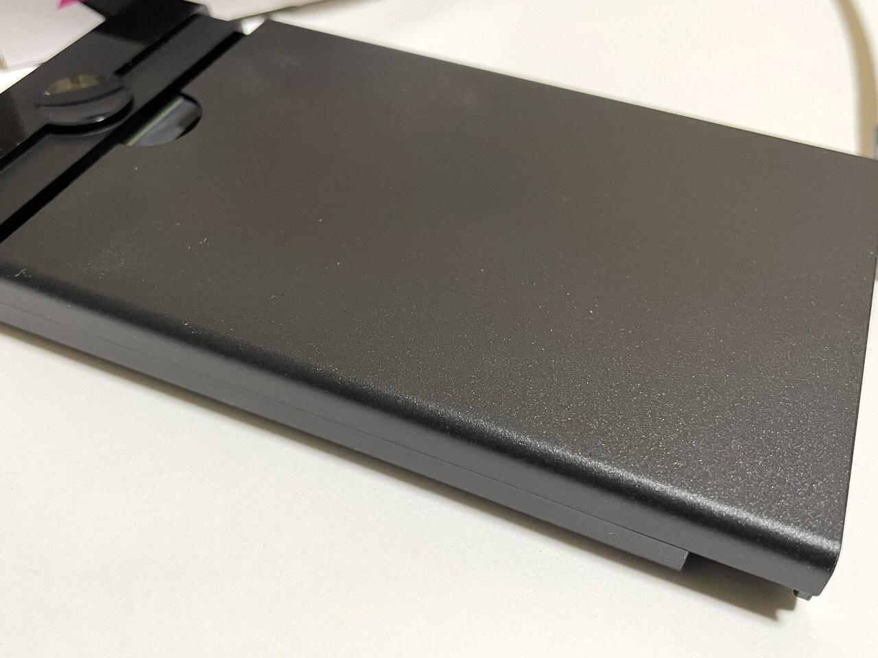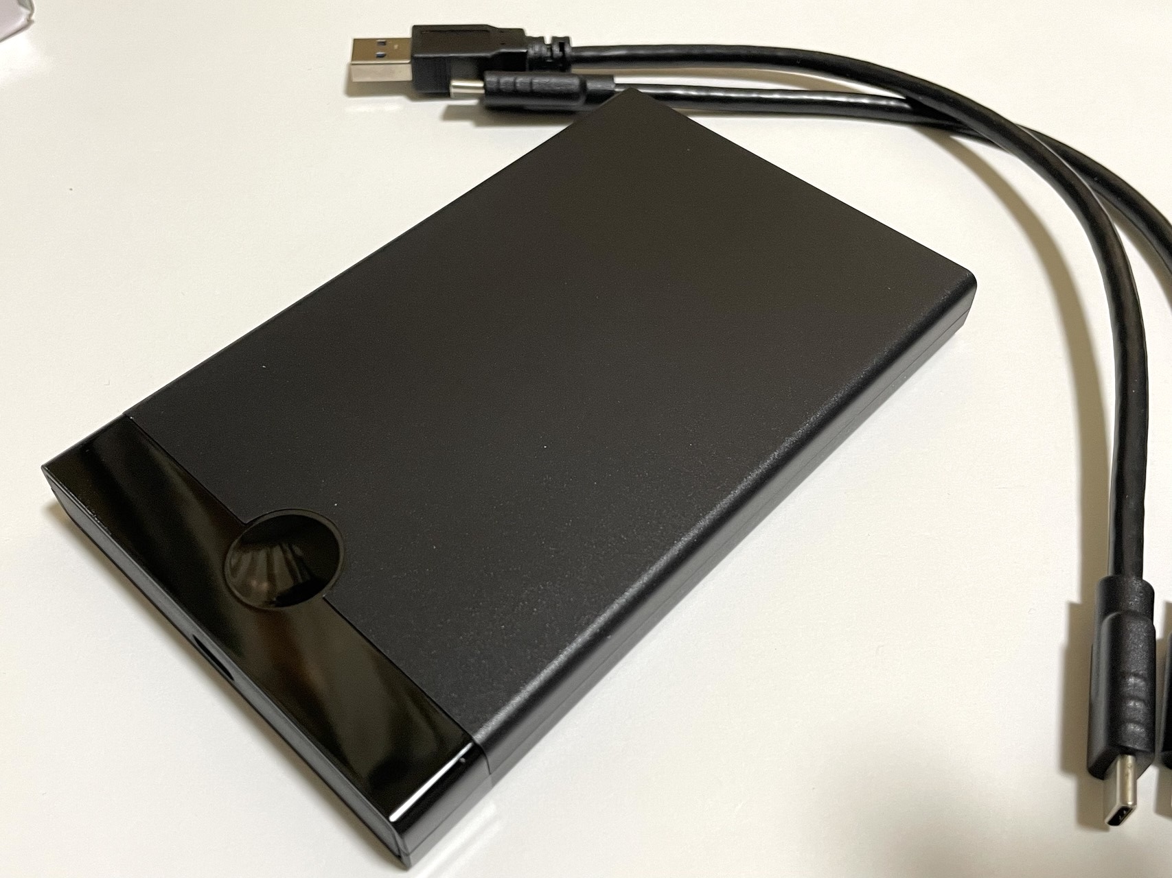 箱の中身はケース本体とケーブル2本(USB-CとUSB-A)です。ケーブルの長さは20cmほどとかなり短いので注意が必要です。長めのケーブルが必要な場合、他のケースを検討した方が良いかもしれません。