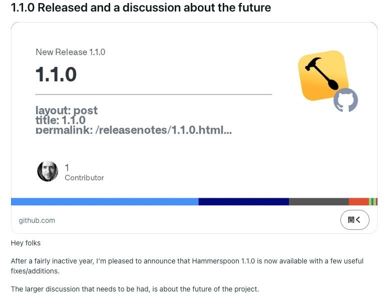 今回の 1.1.0 リリースは、単なるアップデートではなく、Hammerspoon の次の10年をどうするかという重要な問いかけも行われています。Objective‑Cの限界や、LuaSkinの巨大さ、コントリビューター不足といった問題を解決するための、Hammerspoon v2(Swift + JS)は現実的な計画かもしれません。
