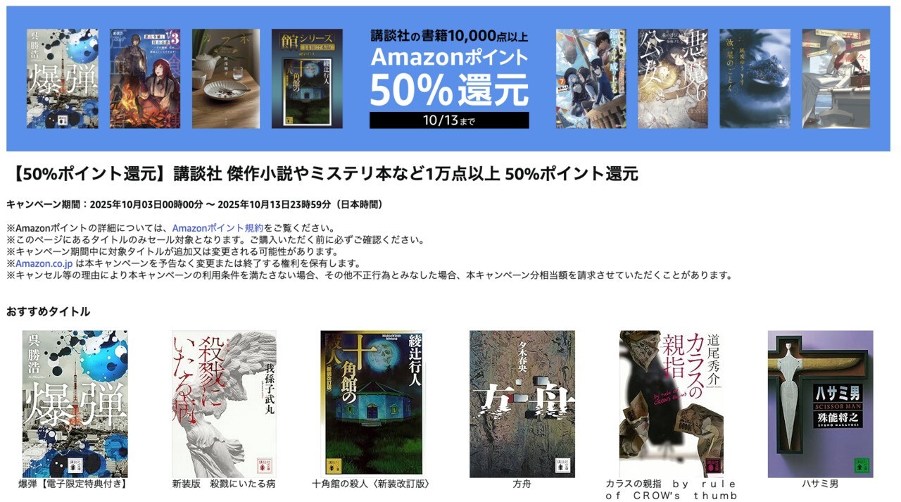 AmazonのKindleストアでは現在、講談社の電子書籍23冊を対象とした「【冬☆電書2020】上巻100円フェア 第3弾」が1月9日までの期間限定で開催中です。 上下巻に分かれた小説の上巻だけが100円になるキャンペーンです。下巻はセール対象外ですが、どのような... -