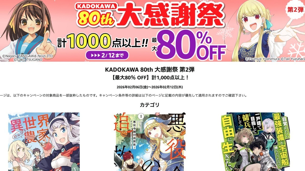 AmazonのKindleストアでは現在、カドカワの電子コミック50冊を対象とした「【99円】カドコミ2023電子版」セールが8月3日までの期間限定で開催されています。 対象の書籍が1冊99円になるお得なセールです。 気になる作品があるかどうか確認してみてはいかが... -