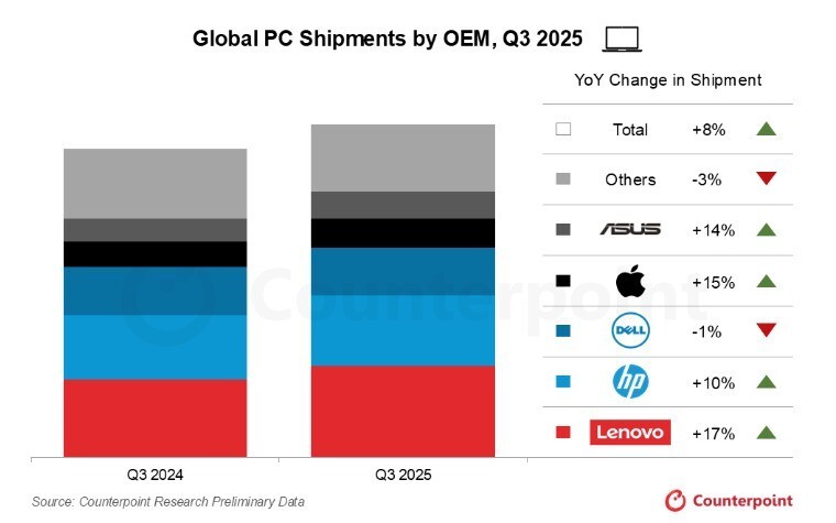 | Lenovo | +17.4% | 最大手として好調維持 |