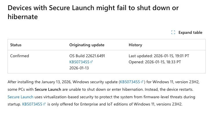 2026年1月のPatch Tuesday(毎月恒例のWindows更新)で配信されたWindows 11 23H2向け更新プログラムKB5073455にて、一部のPCで正常にシャットダウンできない不具合が発生していることをMicrosoftが正式に認めました。
