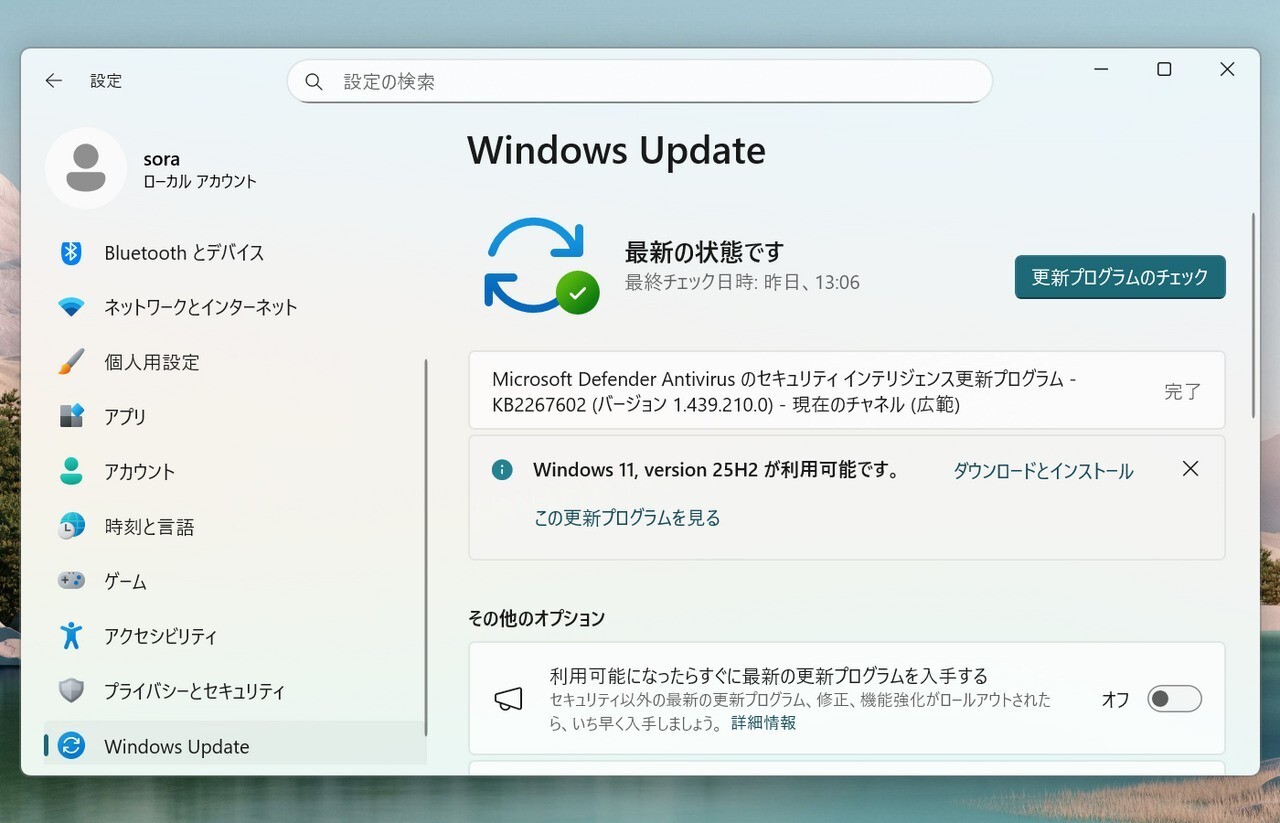 Microsoftによると、2025年10月16日以降、Windows 11 Version 25H2は、Windows 11を使用していて「利用可能になったらすぐに最新の更新プログラムを入手する」を有効にしているすべてのデバイスに対して提供されます。