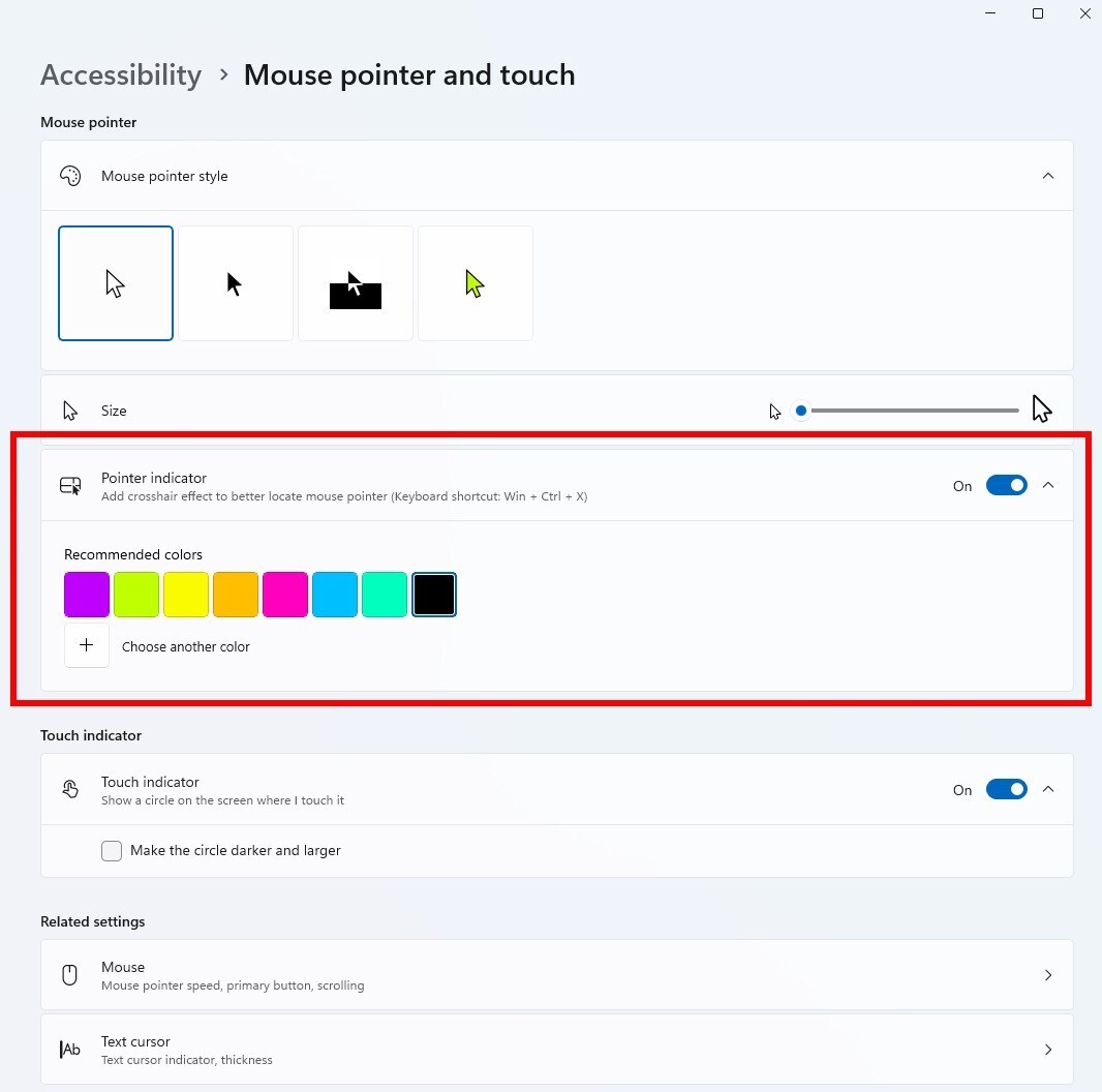 [Pointer Indicator: Accessibility setting for low vision Windows users]