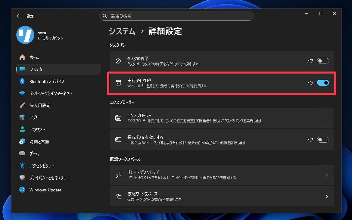 ※新デザイン版の「Run」ダイアログを試すには、Windows Insider Programで提供されているDev/Betaチャネルの Windows 11 25H2プレビュー版が必要です。