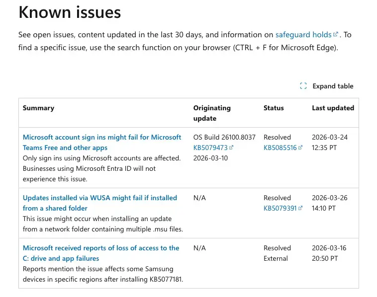 特に、Snapdragon X2搭載デバイス向けの特別版「Windows 11 version 26H1」については、リリース当初から既知の問題が一つも追加されていない状態です。