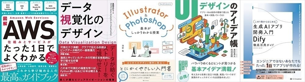 「図解 Amazon Web Servicesの仕組みとサービスがたった1日でよくわかる」「データ視覚化のデザイン」「Illustrator&Photoshop 基本がしっかりわかる授業 作って学ぶデザイン」など