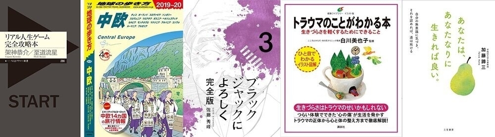 「リアル人生ゲーム完全攻略本」「地球の歩き方 A25 中欧 チェコ/ポーランド/スロヴァキア/ハンガリー/スロヴェニア/クロアチア/ボスニア・ヘルツェゴヴィナ/セルビア/モンテネグロ/マケドニア/アルバニア/コソヴォ/ルーマニア/ブルガリア 2019-」「ブラックジャックによろしく 完全版」など