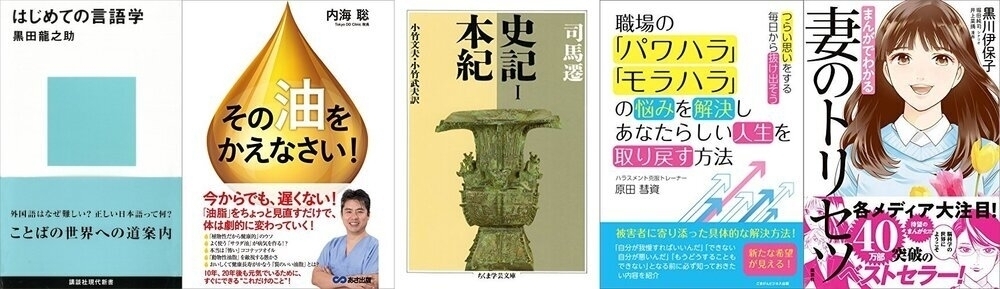 「はじめての言語学」「その「油」をかえなさい!―――「油脂」をちょっと見直すだけで体は劇的に変わっていく!」「史記1 本紀」など