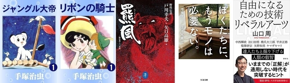 「ジャングル大帝」「リボンの騎士」「ヤマケイ文庫 野性伝説 羆風/飴色角と三本指」など