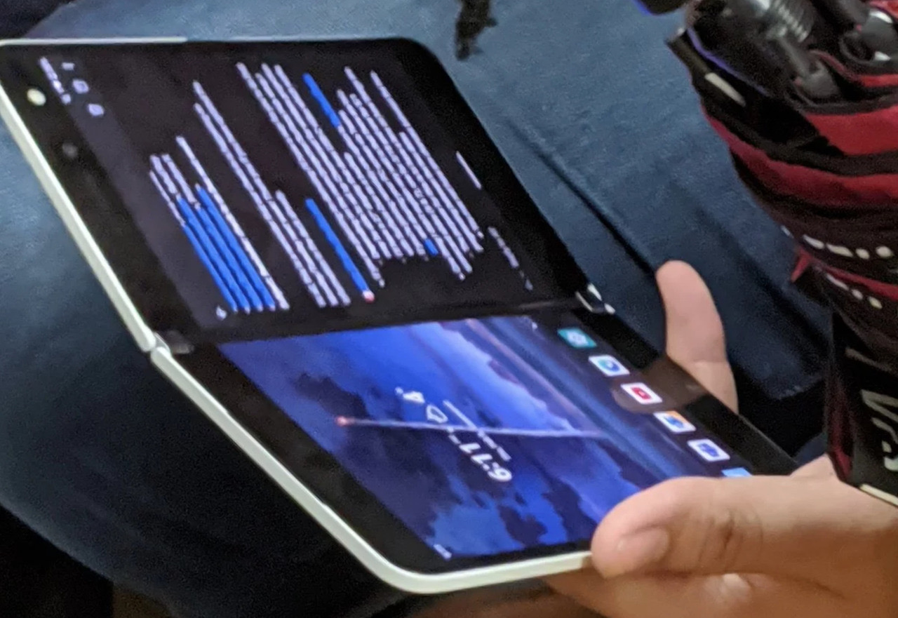 Hey, not sure if interesting, but I just saw a guy in Vancouver's SkyTrain playing around with Surface Duo. Got photos and videos. pic.twitter.com/TsRQYdD1pz