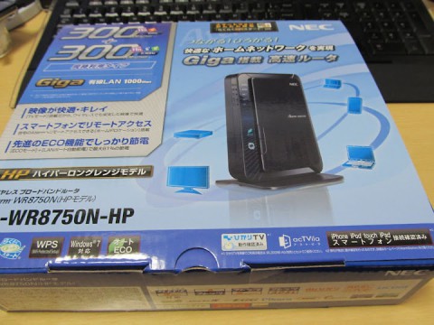「NEC Aterm WR8750N」というNEC製の無線LANルーターを購入しました。実は半年ほど前に、バッファロー製の無線LANルーター「WZR-HP-AG300H」を購入したばかりだったのですが、最近接続がどうにも安定せずだめでした。完全に切断されるならまだしも、11gだけ接続できなくなったり、DNSで名前がひけなくなったり、中途半端でストレスがたまる状態になり、再起動しないと復活しない状態。