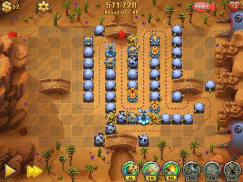 遊んでみるとなるほど面白いです。タワーディフェンスおなじみのルート固定面はもちろん、Fieldrunnersの特徴であるルートツクール面がやみつきになります。