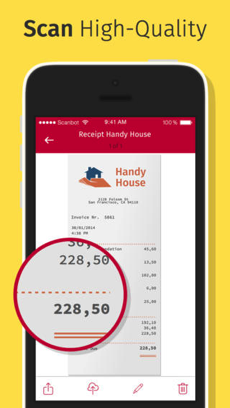 Scanbotは、PDF/JPGファイルを最大200dpiで作成することができるスキャナーアプリで、Dropbox、Box、Evernote、Yandexなどのクラウドにも対応、高速で美しいデザインが売りのアプリです。