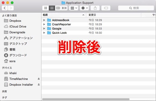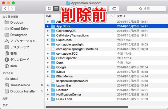 ↑削除前の「~/Library/Application Support」内。