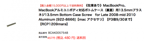 以前にもユニボディMacBook Proのネジ入手方法というエントリーを書きましたが、秋葉館のパーツコーナーでもネジを取り扱っているみたいです。