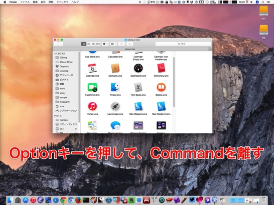 ちなみに、Macではウィンドウを最小化する(Command+M)のと、隠す(Command+H)のでは扱いが異なります。その辺は「OSXの「隠す」と「ウィンドウの最小化」どっちを使う?」などが参考になるでしょう。