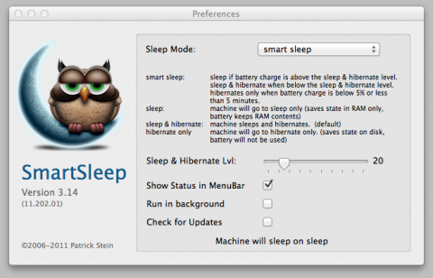 SmartSleepはMacBookのスリープ状態を変更するソフトです。基本機能は以前から変わっていません。