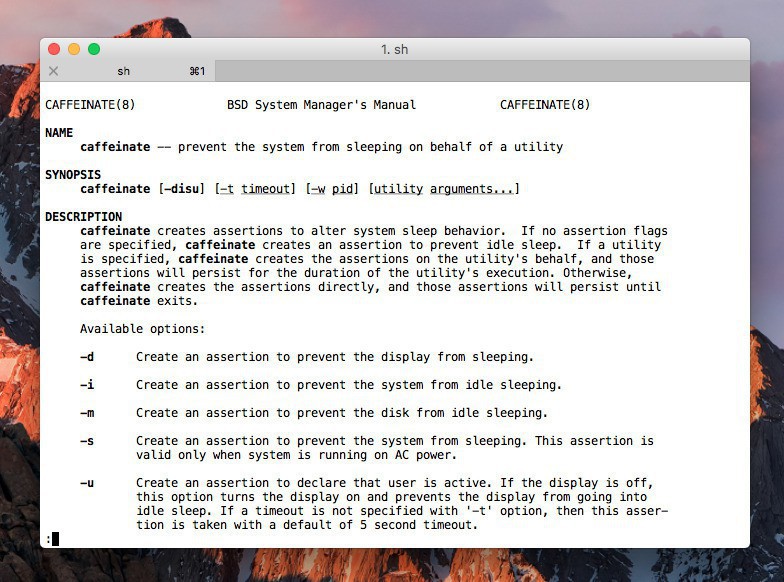 オプションの詳細は「man caffeinate」で確認できます。