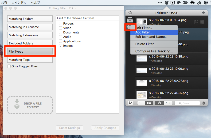 例えば「File Types」で「Images」にチェックを入れると画像ファイルだけを表示するフィルタを作成できます。