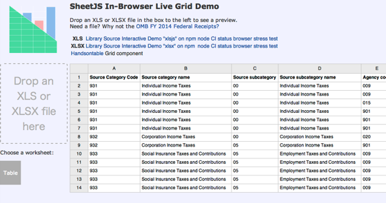 ブラウザで動くJavaScript製XLS/XLSXパーサーが「SheetJS」使えそう