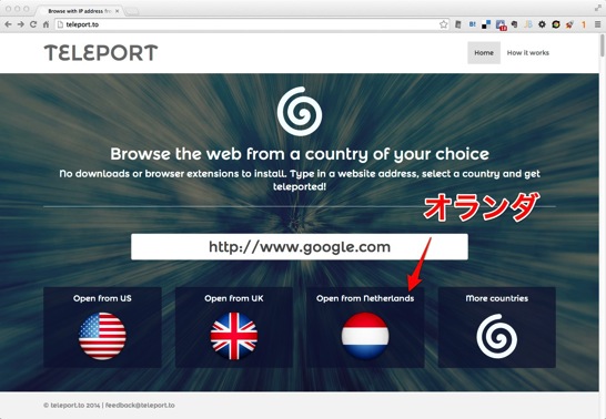 「How it works」によると、各国に設置されたプロキシサーバーを経由してWebサイトを閲覧している仕組みになっているようなので、Teleport経由でクレジットカード番号などの機密情報は入力しないようにとのこと。また結果的に閲覧者の国の部分を偽装することになるので、使用する場合は自己責任にてお願いします。