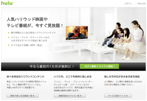 海外で大人気の動画配信サービスhuluの日本語版が開始されたので早速ためしてみました。本来なら月額1480円のサービスですが今なら最初の1ヶ月間が無料なのでお試しチャンスです。