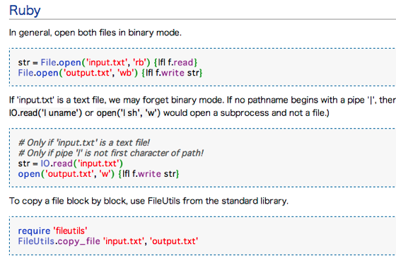 例えば、File IOのRubyの部分は上の図のようになっています。これなら理解可能ですね。