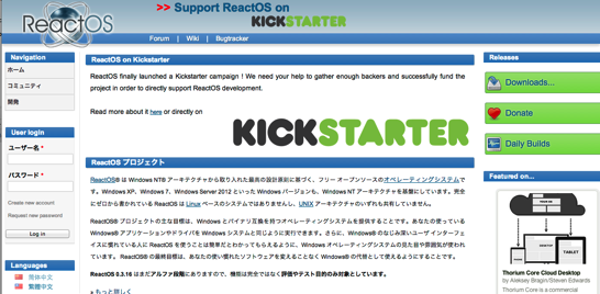 ReactOSではKickstarterでキャンペーンを行っていて、クラウドコンピューティングを目的とした商用OSの開発も目指しているようです(Thorium Coreというらしい)。こちらもチェックしてみてください。