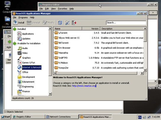 ReactOS Application Managerを使って外部アプリをインストールすることも。