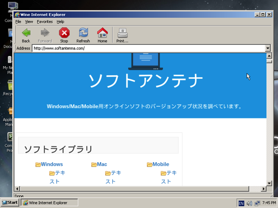 Wine Internet Explorerを使ってブラウジングも可能。