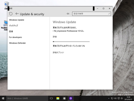 Windows Updateを「高速」に設定しているユーザーは、Windows Update経由で最新ビルドに更新することができます(設定 > Update & security > Windows Update)。現段階で新ビルドのISOファイルは公開されていない模様。