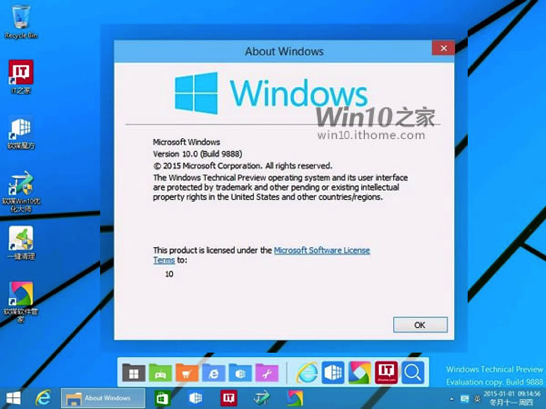 ITHomeがリークしたスクリーンショットにより、Windows 10テクニカルプレビューの最新ビルド「Windows 10 build 9888」にて、NTカーネルのバージョン番号これまでの6.4から10.0にジャンプアップしたことが判明しました(WinBeta、Neowin)。上がその画像で、確かに「Microsoft Windows Version 10.0」と表示されていることが分かります。