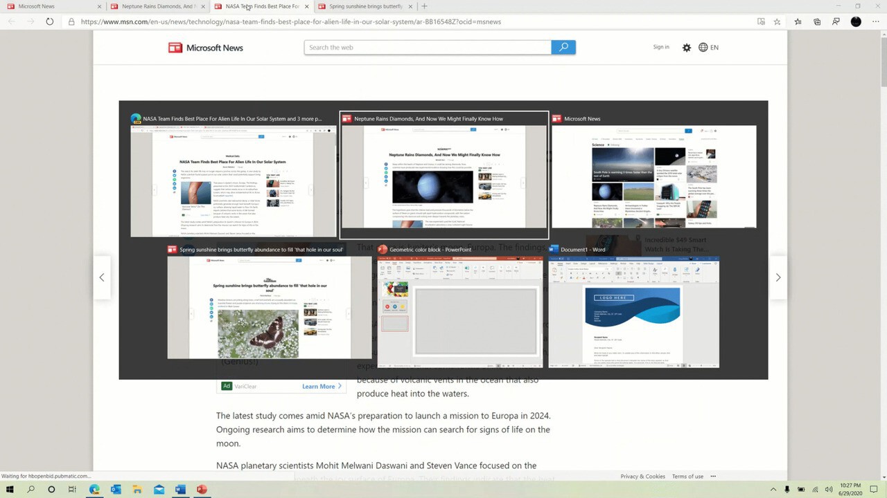アプリとサイト間のALT + TAB: Microsoft Edgeで開いているすべてのタブが、Alt + Tabにも表示されるようになった。「設定 > システム > マルチタスク」に設定が追加され、表示するタブを3つまたは5つに制限したり、この機能を完全にオフにする事もできる。