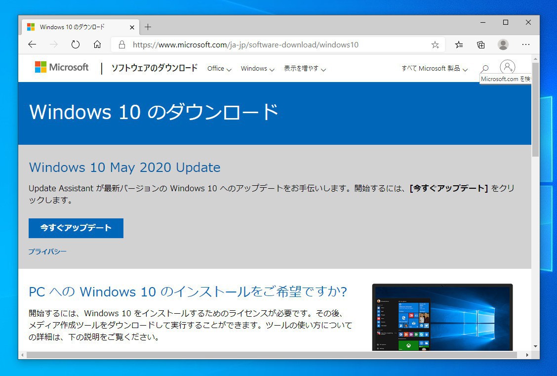 ただし機能アップデートは今後数週間にわたり段階的に公開範囲が拡大する予定で、互換性の問題が発生していなくてもWindows Updateで機能アップデートが表示されない場合もあります。その場合更新アシスタントやメディア作成ツールを利用してアップグレードする事もできます。