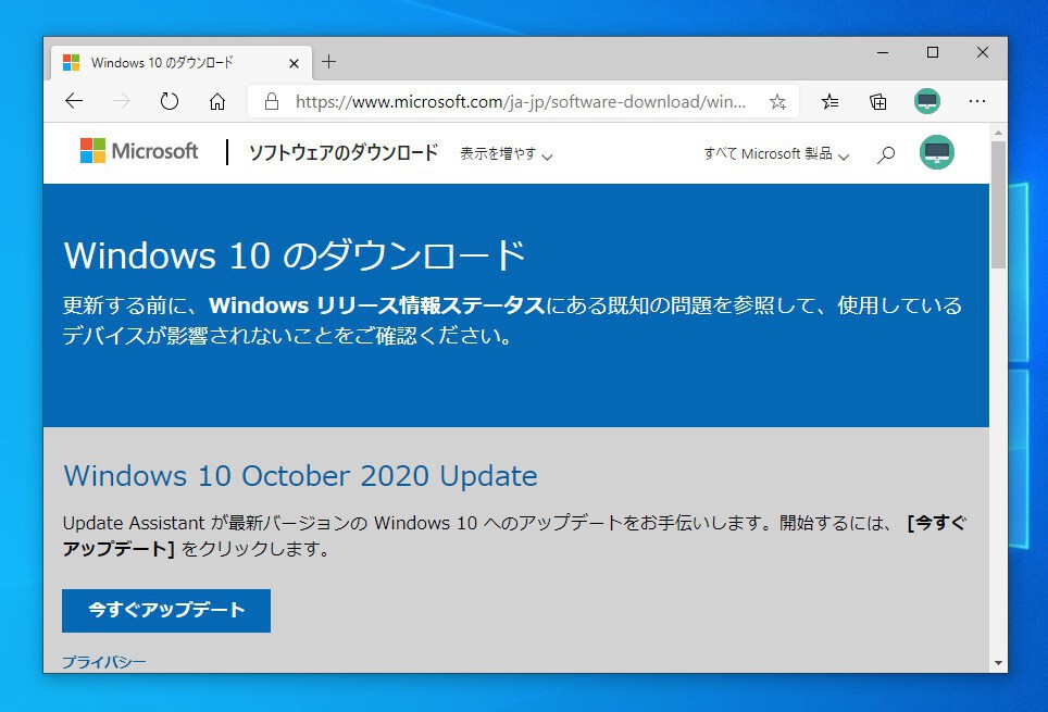 だし機能アップデートは今後数週間にわたり段階的に公開範囲が拡大する予定で、互換性の問題が発生していなくてもWindows Updateで機能アップデートが表示されない場合もあります。その場合更新アシスタントやメディア作成ツールを利用してアップグレードする事もできます。