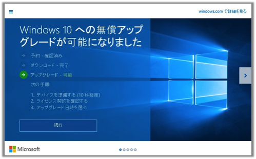 アップグレードが可能になると、デスクトップに通知され、インストールするかどうか決定することができます。全員一斉のタイミングではないのでもどかしい気もしますが、膨大な数のWindowsユーザーが存在していることを考えるとしかたない処置かもしれません。