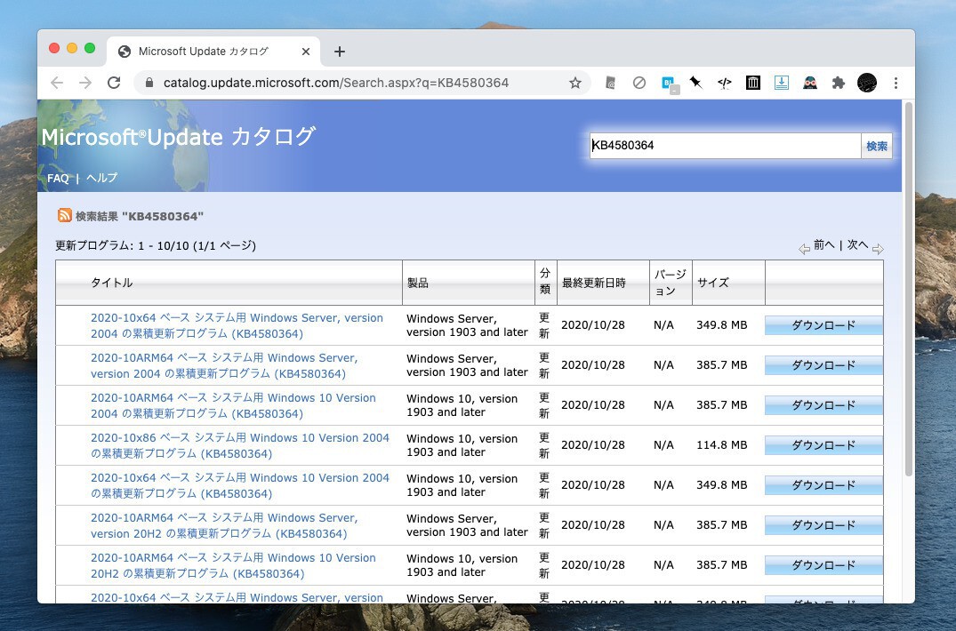 Windows Updateの他、Microsoft Update Catalogを利用してインストールすることができます。