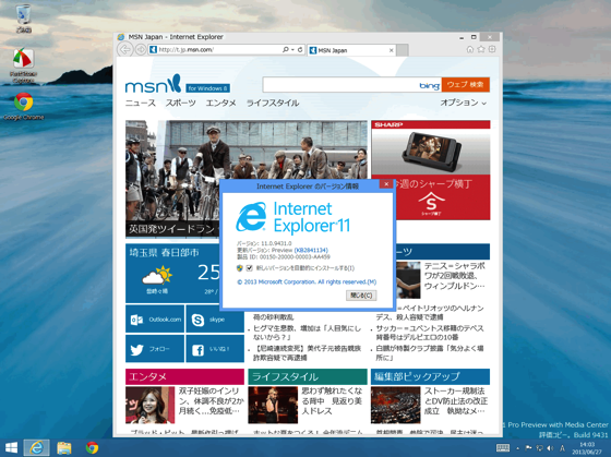 IEは「IE 11 Preview」になっていました。IE 11の性能は驚異的らしいです(ガジェット速報)。
