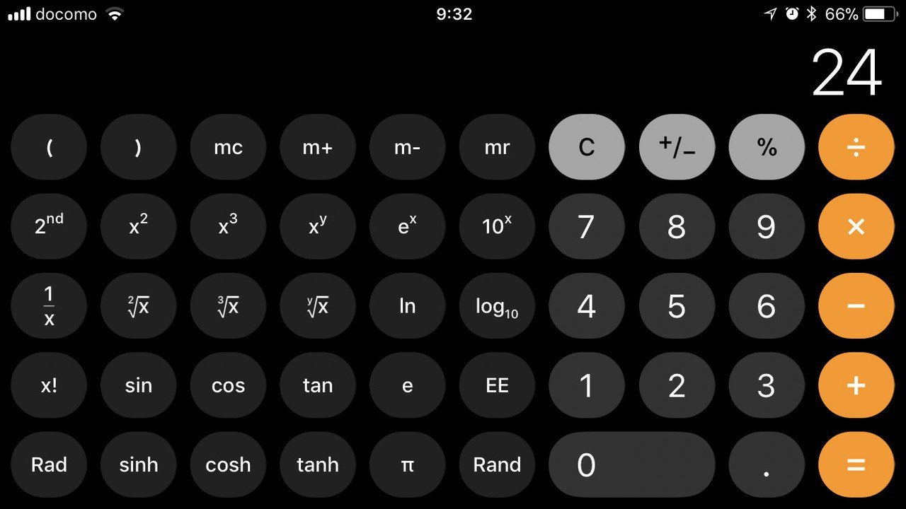 実際、iOS 11を導入したiPhoneやiPadで計算機アプリを立ち上げ、すばやく「1+2+3=」とタップすると、うまくいけば「6」ではなく「24」という結果が表示されます。