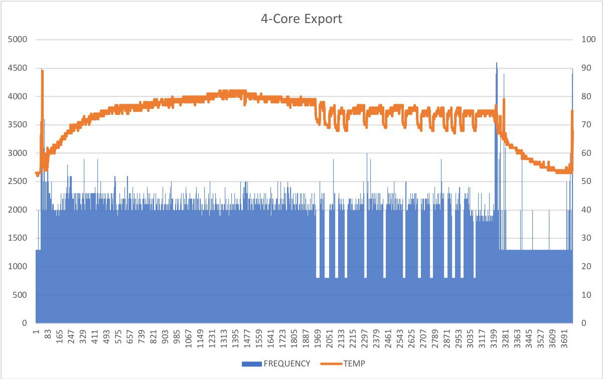 If the CPU is at 800MHz, the CPU isn’t throttling, the CPU is idle. The test isn’t using the CPU but rather the on-chip hardware encoder. https://t.co/4kXB2TXsvK