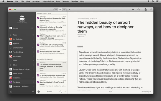 Mac用の人気RSSリーダーアプリReederの最新版「Reeder 2.0.2」がリリースされました。