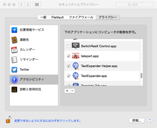 teleportを両方のMacで起動します。するとアクセシビリティで許可を与えられるよう要求してくるので、「設定 > セキュリティ > アクセシビリティ」でteleport.appにチェックを入れます。