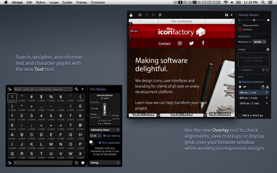 ディスプレイ上に表示されたいろいろなモノを測定することができる超多機能な物差しアプリ「xScope」の最新バージョン 4.0 がリリースされました。現在リリース記念ということで、通常価格の半額である2500円で購入することができます(期間限定で終了日は不明)。