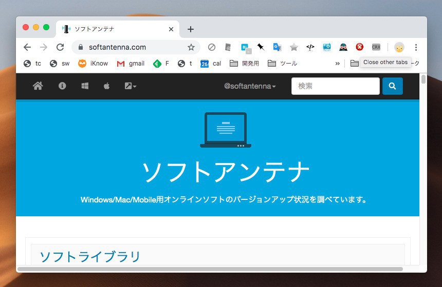 Close Other Tabsは「他のタブをすべて閉じる」を置き換えることができるシンプルな拡張機能です。Chromeウェブストアにはこれ以外にもタブ管理系のアドオンが存在しますので、困っている方は探してみることをオススメします。