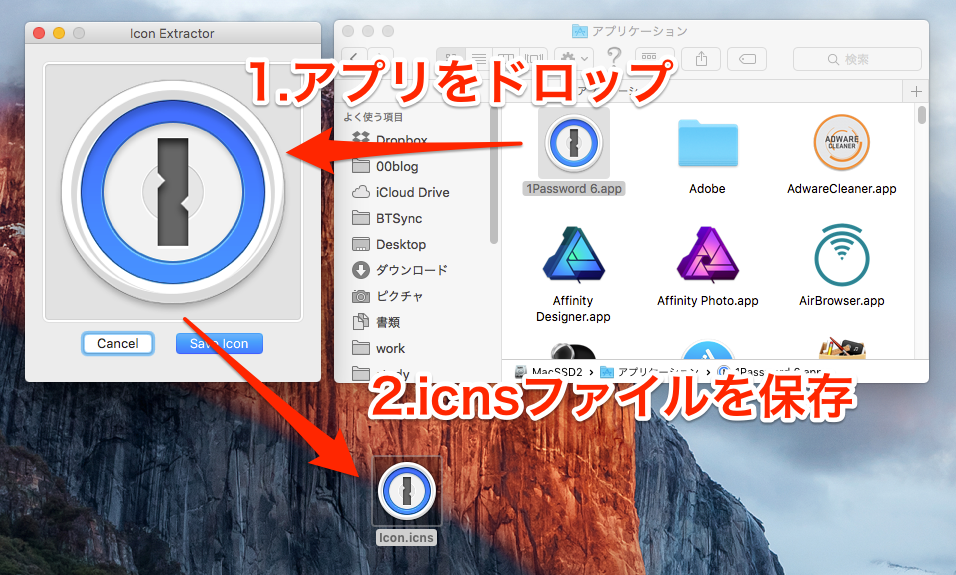 ドラッグ&ドロップでMacアプリのアイコンを抽出